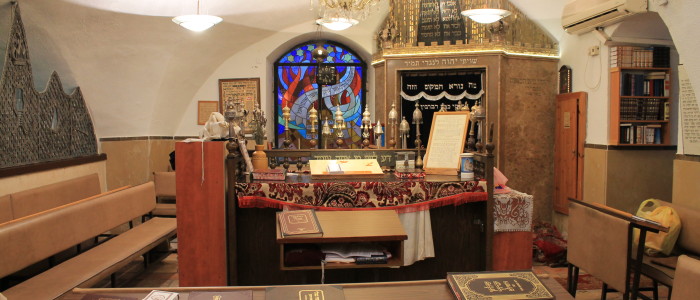 אנחנו יוצאים מכיוון החדר הזה לקבר דוד ומקיפים את הבניין עד לכניסה הראשית והמפוארת לבית הכנסת הספרדי. את פנינו מקדמים קירות עבים במיוחד. בית הכנסת הספרדי שוכן בתוך אחד המבנים העתיקים בהר ציון, ומשולבים בו פריטים אדריכליים מתקופות שונות.